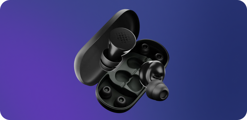 XS-L silicone tips create a snug, no-slip seal for every ear shape.
